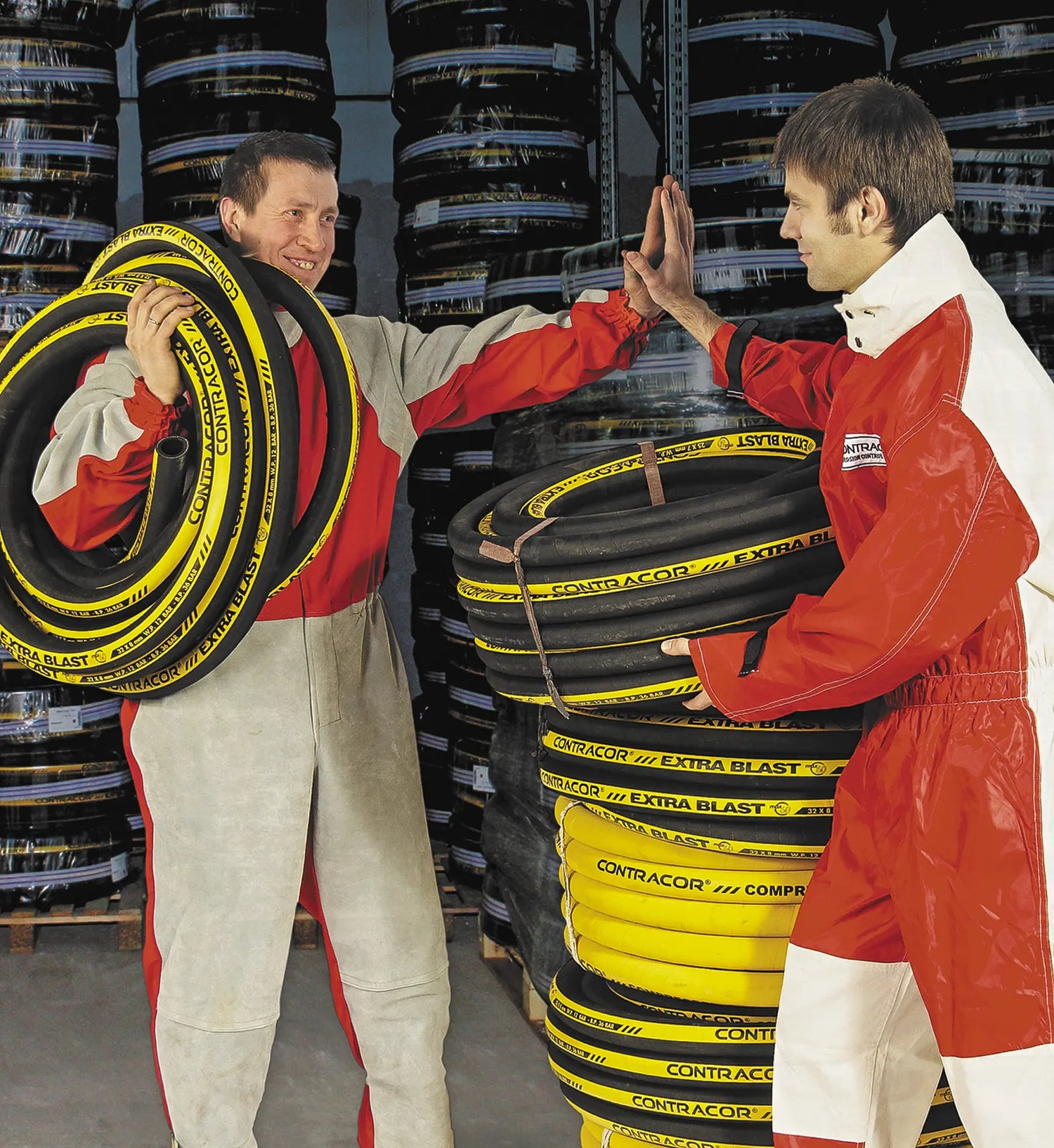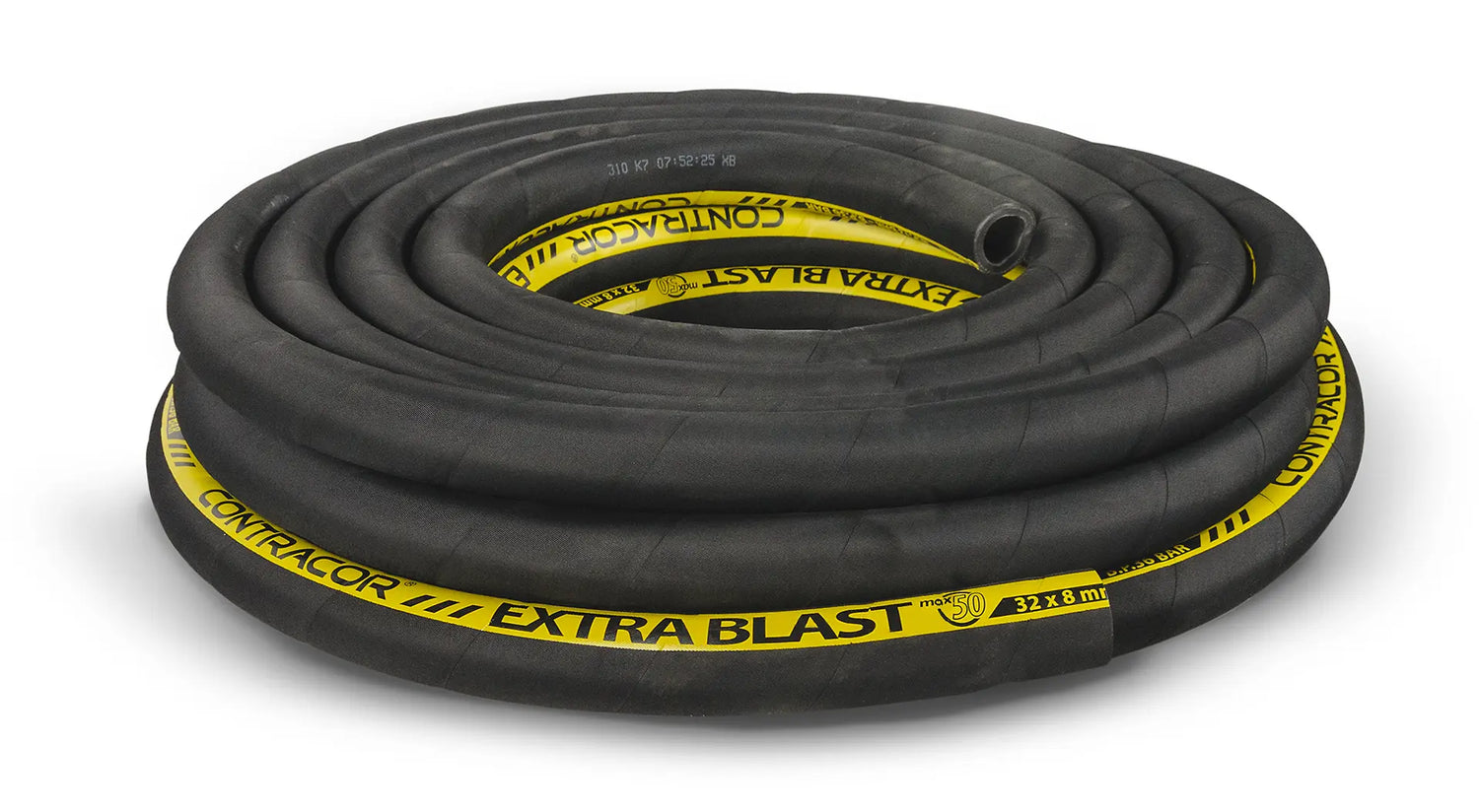 Der Contracor ExtraBlast Strahlschlauch ist ein hochwertiger Schlauch, der für schwere Strahlanwendungen konzipiert ist. Er weist eine hohe Abriebfestigkeit von ca. 50 mm³ nach DIN ISO 4649:2013 auf und ist damit die ideale Wahl für alle, die einen langlebigen und zuverlässigen Schlauch benötigen. Der Schlauch besteht aus schwarzem, leitfähigem NR-Gummi und verfügt über hochfeste Textilseile für zusätzliche Festigkeit und Haltbarkeit. Zusätzlich ist die Außenseite aus schwarzem, leitfähigem SBR/NR - abriebfest und ozonbeständig - stoffgemustert, was bedeutet, dass er selbst den anspruchsvollsten Situationen standhalten kann. Der Schlauch ist für eine Betriebstemperatur von -30°C bis +80°C und einen konstanten Arbeitsdruck von 12 bar geeignet, der Berstdruck beträgt 36 bar.